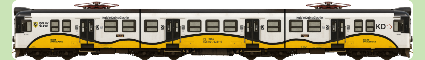 Elektryczny zespół trakcyjny EN57 w barwach Kolei Dolnośląskich to jeden z najbardziej rozpoznawalnych pojazdów regionalnych w polsce. Posiada charakterystyczne biało-żółto-czarne malowanie, które wyróżnia go na tle starszych schematów malarskich. Jednostka ta została zaprojektowana jeszcze w latach 60., ale wiele egzemplarzy przeszło modernizacje, poprawiające komfort podróży. Pociąg składa się zazwyczaj z trzech członów i osiąga prędkość maksymalną około 110 km/h. Wnętrze po modernizacji oferuje wygodniejsze siedzenia, klimatyzację oraz system informacji pasażerskiej. EN57 KD kursuje głównie na trasach regionalnych na Dolnym Śląsku, łącząc mniejsze miejscowości z większymi miastami. Jest pojazdem niezwykle uniwersalnym i przystosowanym do częstych zatrzymań. Jego konstrukcja opiera się na prostych, sprawdzonych rozwiązaniach technicznych. Pomimo wieku, wciąż pozostaje ważnym elementem taboru regionalnego. Ciekawostką jest fakt, że EN57 to najliczniej wyprodukowany elektryczny zespół trakcyjny w Polsce.