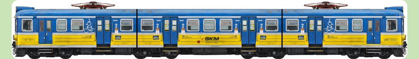 EN57 w barwach Szybkiej Kolei Miejskiej to klasyczny pojazd obsługujący ruch aglomeracyjny. Charakteryzuje się żółto-niebieskim malowaniem z dodatkowymi akcentami kolorystycznymi. Pociąg został przystosowany do częstych zatrzymań i intensywnej eksploatacji miejskiej. Osiąga prędkość maksymalną około 110 km/h. Wiele jednostek zostało zmodernizowanych, co poprawiło komfort pasażerów. Wnętrze oferuje miejsca stojące oraz siedzące, dostosowane do dużej liczby podróżnych. EN57 SKM kursuje głównie w dużych aglomeracjach, takich jak Trójmiasto. Pociąg jest prosty w obsłudze i niezawodny. Dzięki swojej konstrukcji dobrze sprawdza się w ruchu podmiejskim. Ciekawostką jest, że EN57 SKM często posiada dodatkowe systemy informacji dostosowane do ruchu miejskiego.